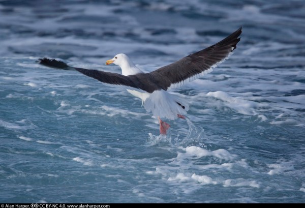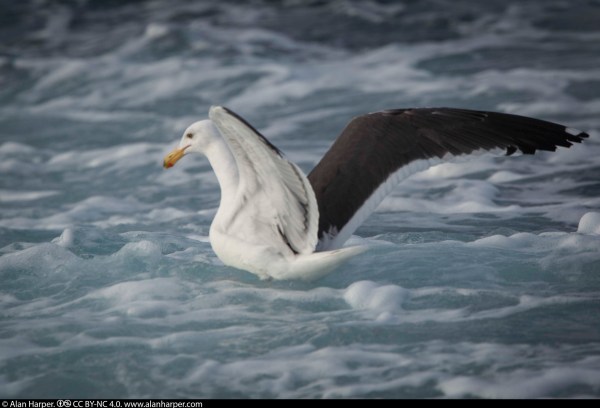The gull stood on a rock in the sea.